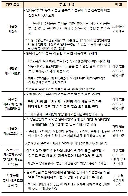 '민간임대주택에 관한 특별법' 하위법령 개정안 입법예고