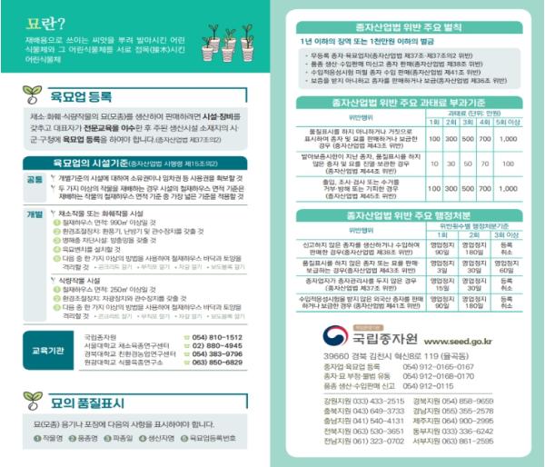 한편, 종자원은 무·배추 등 김장 채소 종자·묘 유통 성수기가 다가옴에 따라 9월 초까지 유통조사를 강화하고, 온라인을 통한 개인 간 불법 거래가 많은 관엽식물과 과수 묘목에 대해 상시 유통거래사이트 상시 점검을 실시한다고 밝혔다.