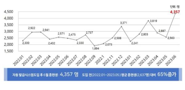 한국고용정보원(원장 김영중)은 재직자 내일배움카드 자동 발급시스템을 도입 후 성과를 분석한 결과, 카드 신청부터 발급까지 최대 2주가 소요되던 기간이 최단 2일로 단축됐다고 밝혔다. 또한 카드발급 신청 후 7일 이내 수강한 훈련생은 4,357명(6월)으로 도입 전보다 65%나 증가한 것으로 나타났다.