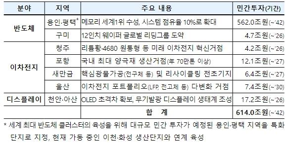 [중앙뉴스라인, 우제헌기자] 산업통상자원부는 총 7개의 국가첨단전략산업 특화단지를 지정하고, 2042년까지 민간투자 총 614조원을 뒷받침할 계획이다.