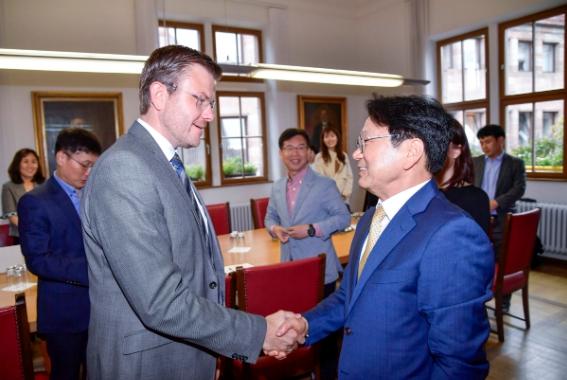 강 시장과 광주시대표단은 이날 오전 독일 뉘른베르크시청을 방문, 마르쿠스 쾨니히 뉘른베르크시장을 만나 양 도시의 지속적인 교류협력 방안을 논의했다.