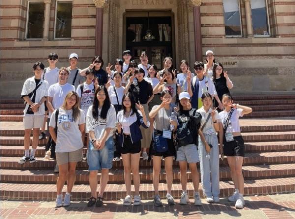 이어 2일 차에는 캘리포니아대학교 로스앤젤레스(UCLA)를 방문해 재학생의 안내에 따라 학교를 견학하는 시간을 가졌다. 대표단은 파월도서관, 공과대학 등 캠퍼스 곳곳을 방문하며 학교의 열정적인 면학 분위기를 느끼고 진로, 진학에 대한 고민을 나누었다.