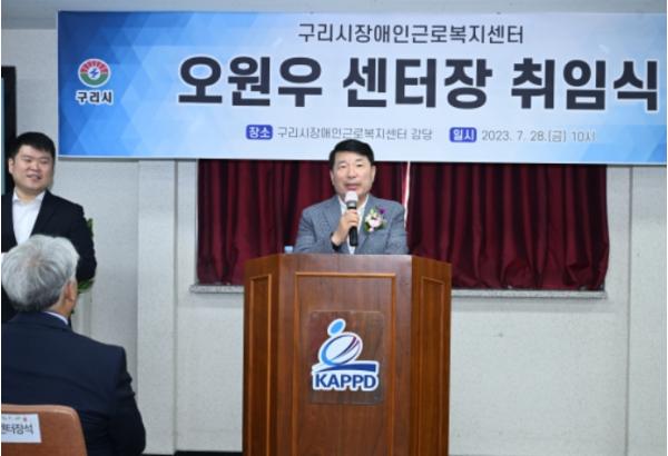 [중앙뉴스라인, 한성영기자] 구리시는 28일 구리시장애인근로복지센터 주관으로 센터 3층 강당에서 ‘구리시장애인근로복지센터 오원우 센터장 취임식’을 개최했다.