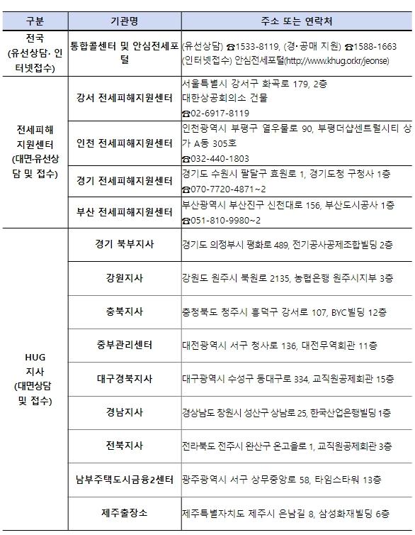 전세사기로 어려움을 겪고 있는 임차인은 거주지 관할 시?도에 피해자 결정 신청을 할 수 있고, 위원회 의결을 거쳐 피해자로 결정된 자는 주택도시보증공사(HUG) 전세피해지원센터(대면?유선) 및 지사(대면)를 통해 지원대책에 대한 자세한 안내를 받을 수 있다.