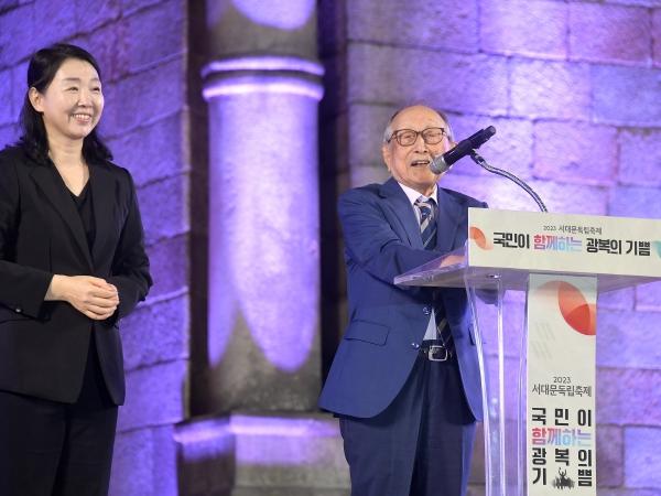 이날 저녁 서대문독립공원 야외특설무대에서 열린 개막식에서는 일제 강점기 윤동주 시인과 동문수학하고 도산 안창호 선생의 강연을 직접 듣기도 했던 103세 철학자 김형석 연세대 명예교수가 축사를 해 행사를 더욱 뜻깊게 했으며 이종찬 광복회장도 참석해 자리를 빛냈다.