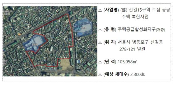 [중앙뉴스라인, 우제헌기자] 국토교통부는 8월 24일 서울 신길15구역, 사가정역 인근, 용마터널 인근, 녹번역 인근 총 4곳(3,900호)을 도심 공공주택 복합사업 예정지구로 신규 지정한다고 밝혔다.