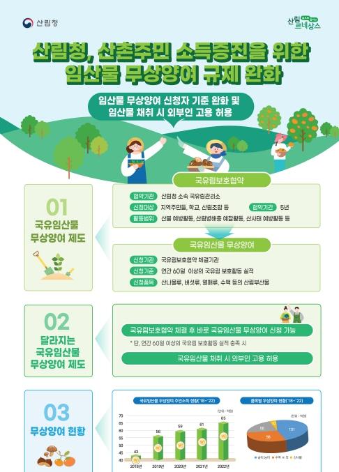 임산물 무상양여 신청자 기준 완화 및 임산물 채취 시 외부인 고용 허용