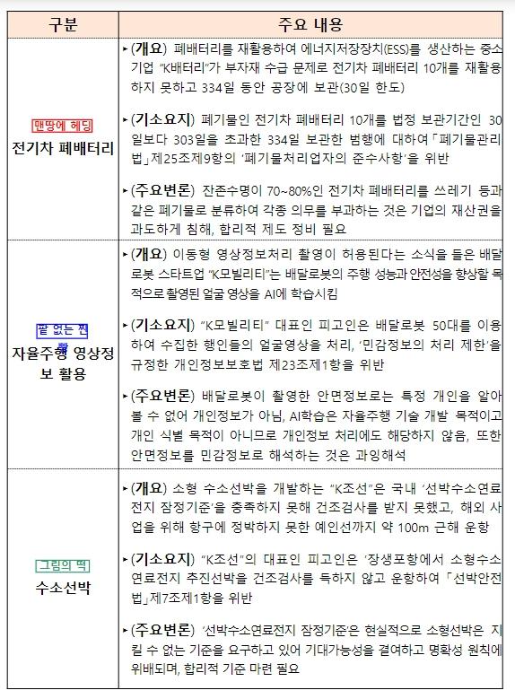 이번에 세 번째로 개최되는 규제뽀개기는 이동 수단(모빌리티) 분야에서 ‘전기차 폐배터리, 미래자원 vs. 쓰레기?’. ‘인공지능(AI) 학습을 할 수 없는 영상정보’, ‘바다에 띄울 수 없는 수소선박’을 주제로 진행하며, 법령과 규제 내용이 복잡하다는 점을 고려해 국민들의 이해를 돕기 위한 모의재판 형식으로 진행됐다.