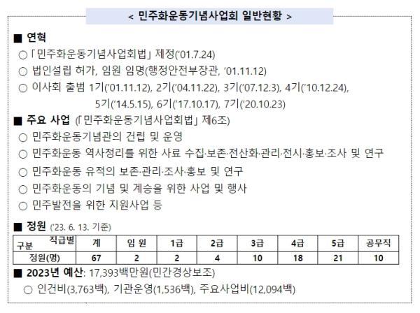 [중앙뉴스라인, 우제헌기자] 행정안전부는 2023년 9월 5일, 민주화운동기념사업회에 대한 감사 결과를 발표했다.