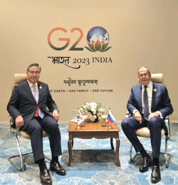 [중앙뉴스라인, 신기철기자] G20 정상회의 대표단으로 인도 뉴델리를 방문중인 박진 외교부 장관은 9월 10일 오전(현지 시간) 세르게이 라브로프(Sergey Lavrov) 러시아 외교장관을 만나 양국관계 현안 및 한반도 정세 등에 대해 논의했다.