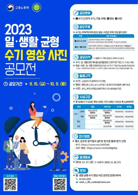 [중앙뉴스라인, 우제헌기자] 고용노동부는'일·생활 균형 수기·영상·사진 공모전' 응모작품 접수를 9월 15일부터 10월 9일까지 진행한다고 밝혔다.
