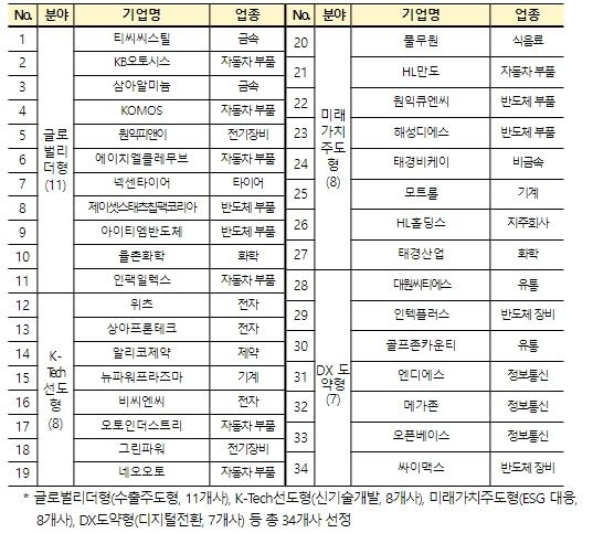 산업통상자원부, '라이징 리더스 300' 2기 34개사 선정