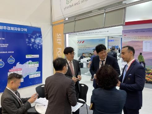 광주경자청은 이번 전시회에 광주도시공사·광주테크노파크와 공동으로 홍보부스를 운영해 ▲스마트에너지산업지구Ⅰ·Ⅱ ▲미래형자동차 산업지구 ▲인공지능(AI) 융복합지구의 투자여건 및 분양 안내, 기업 지원, 펀드투자 등 광주시 인공지능(AI) 산업과 연계한 에너지 전환 및 신산업 육성방안에 대해 설명하고, 투자상담도 진행했다.