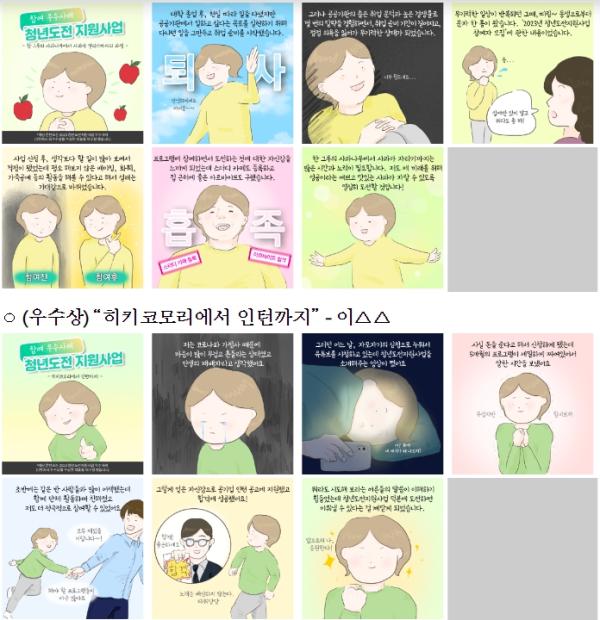 청년도전지원사업 우수사례 공모전에서 수상한 이○○(남) 씨는 “밀착 상담과 목소리 훈련을 통해 자신감을 회복한 게 큰 도움이 되었으며, 공기업 인턴에 합격하는 등 변화의 계기를 마련할 수 있었다”고 참여 소감을 밝혔다.