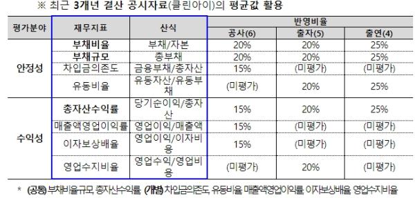 (다년도 재무지표 반영) 기존에는 단년도 결산실적만을 활용했으나, 개편으로 직전 3개년 재무지표 평균값을 활용함으로써, 사업 진행시기에 따른 일시적인 변동을 최소화하고, 기관의 재무상태에 대한 정확한 평가가 이루어질 예정이다.