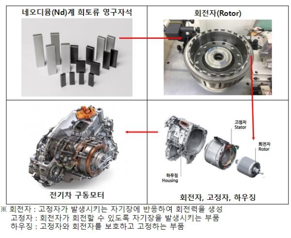 정부는 지난 ’21.5월 소부장 협력모델을 승인하여, 원료(네오디뮴 등 희토류)부터 광물 정·제련, 희토류 영구자석 생산 및 구동모터 생산까지 全 밸류체인에 걸친 상 기업 간의 협력을 지원했다. 또한, ‘성림첨단산업(주)’을 유턴기업으로 선정, 약 116억원 규모 보조금을 지원하여, 생산시설 구축을 촉진했다.