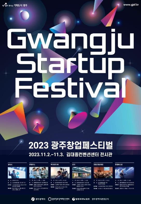광주광역시는 11월 2~3일 김대중컨벤션센터에서 220개 새싹기업(스타트업)과 250개 투자사, 국내·외 대기업 14개사가 참가하는 지역 최대 규모의 ‘2023 광주창업페스티벌(Gwangju Startup Festival, GJSF 2023)’을 개최한다.