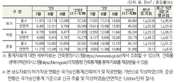 국토교통부, ‘23년 3분기 건축 허가·착공·준공 현황