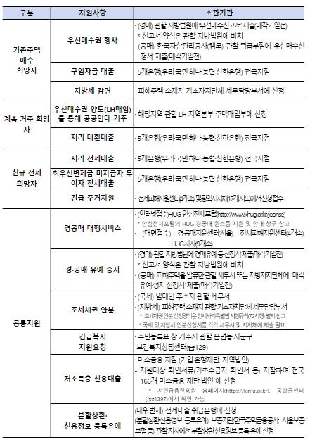 전세사기로 어려움을 겪고 있는 임차인은 거주지 관할 시?도에 피해자 결정 신청을 할 수 있고, 위원회 의결을 거쳐 피해자로 결정된 자는 주택도시보증공사(HUG) 전세피해지원센터(대면?유선) 및 지사(대면)를 통해 지원대책에 대한 자세한 안내를 받을 수 있다.