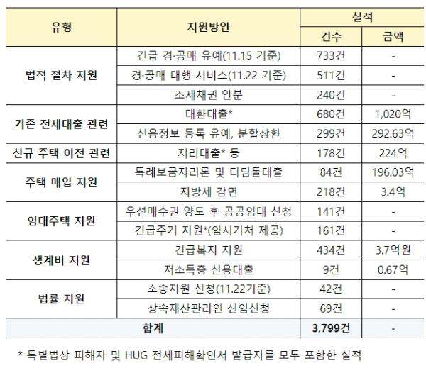 피해자들이 정확한 상담을 받고 지원방안 신청까지 한 곳에서 한 번에 처리할 수 있도록 원스톱 서비스를 개시하는 한편, 전문적인 금융상담?지원이 가능하도록 전국의 전세피해지원센터(서울?경기?인천?부산?대전) 인근에 금융상담 특화지점을 선정하여 지원센터와 연계 상담을 제공하는 방안을 보고했다.