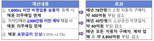 그 결과 사회초년생, 신혼부부 등 약 76만 명의 자동차 구매자가 부담하는 채권 매도 비용이 연간 400억 원 정도 감소됐다.