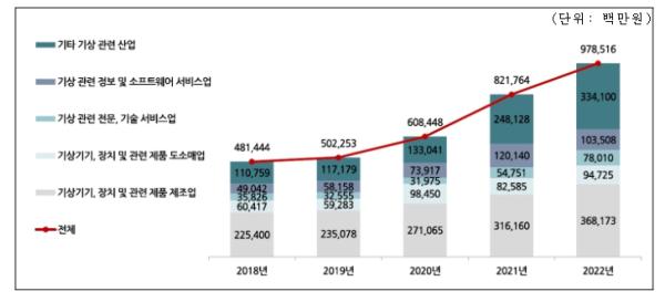 기상청(청장 유희동)은 기후위기 시대에 주목받고 있는 기상산업의 성장과 시장 확대에 힘쓰고 있다. 기상산업의 규모는 지난 2017년 4077억 원이었으나, 해마다 평균 19%의 성장을 거듭하여 2023년 조사에서 2022년 기준 약 9785억 원에 이르는 규모를 기록하며 지속적인 성장을 이루었다. 기상산업의 범위는 관측, 예측 자료를 생산하는 분야부터 시작하여, 기상관측에 필요한 장비와 설비를 제공하는 분야에서 관측·예측 자료의 가공, 유통 등을 통해 융·복합적으로 활용하는 분야에까지 이른다.