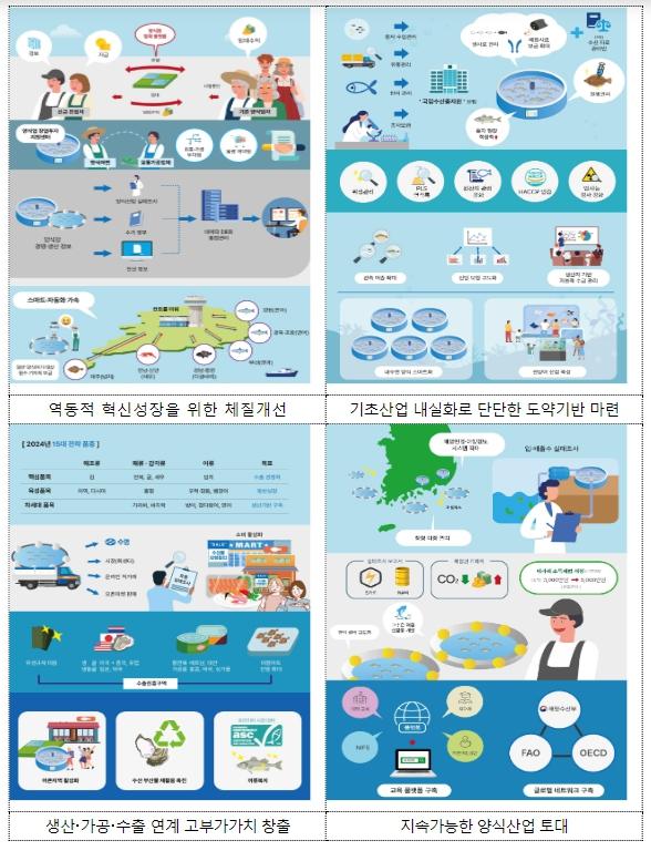 이번 기본계획은 양식산업의 스마트?자동화 전환과 양식산업 생산금액 확대, 국민이 안심할 수 있는 안전한 수산물 제공 등을 목표로, ▲역동적 혁신성장을 위한 체질개선, ▲기초산업 내실화로 단단한 도약기반 마련, ▲생산?가공?수출 연계 고부가가치 창출, ▲지속가능한 양식산업 토대라는 4개 추진 전략과 이에 따른 16개 세부 추진과제로 이루어져 있다.