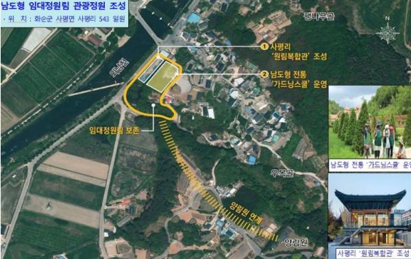 2단계 사업으로 “남도형 임대정원림 관광정원 조성”은 2028년부터 2030년까지 3년간, 총사업비 204억을 투자해 사평면 임대정원림 관광자원을 활용한 원림복합관 조성, 가드닝스쿨 운영, 콘텐츠 및 프로그램 구성하여 추진하는 사업이다.