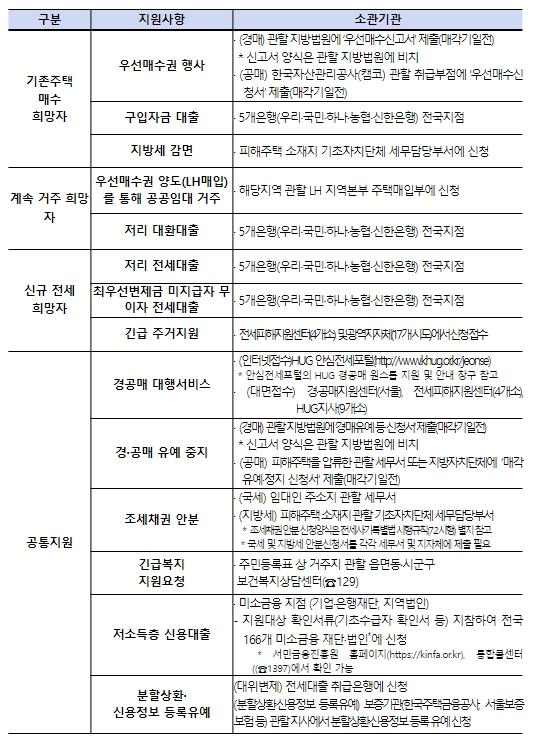 전세사기로 어려움을 겪고 있는 임차인은 거주지 관할 시?도에 피해자 결정 신청을 할 수 있고, 위원회 의결을 거쳐 피해자로 결정된 자는 주택도시보증공사(HUG) 전세피해지원센터(대면?유선) 및 지사(대면)를 통해 지원대책에 대한 자세한 안내를 받을 수 있다.