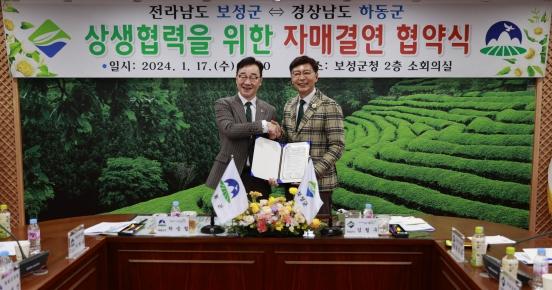 [중앙뉴스라인, 김병연기자] 보성군은 17일 전라남도 보성군과 경상남도 하동군이 보성군청 2층 소회의실에서 차 산업 발전을 위한 자매결연 협약을 체결했다고 밝혔다.