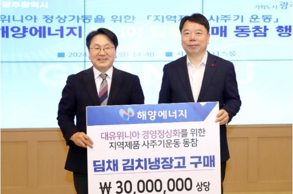 해양에너지는 지역제품 사주기 운동에 동참하기 위해 3000만원 상당의 위니아 딤채 김치냉장고를 구매했다. 사회복지관, 돌봄시설 등 지역사회에 전달하고, 일부는 직원 복지에 사용할 예정이다.