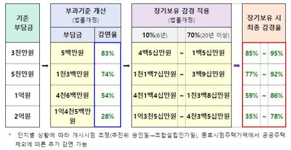 개정법률에서는 장기 1세대 1주택자에 대해 보유기간에 따라 최대 70%까지 부담금을 감경하는 규정이 신설됐다.