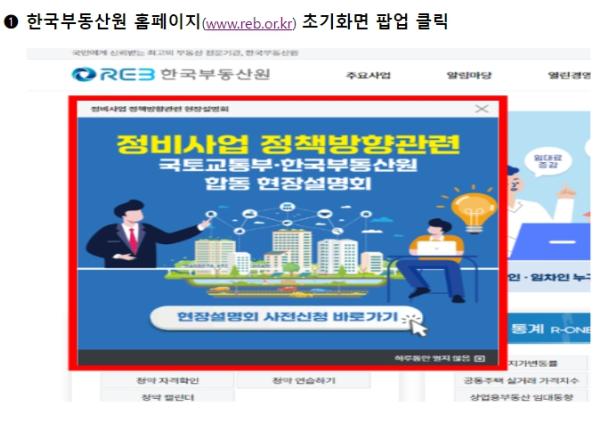 현장설명회는 재개발ㆍ재건축 사업을 추진 중이거나 준비 중인 주민, 협회, 업계 담당자 등 누구나 온라인 사전신청을 통해 참가할 수 있다.