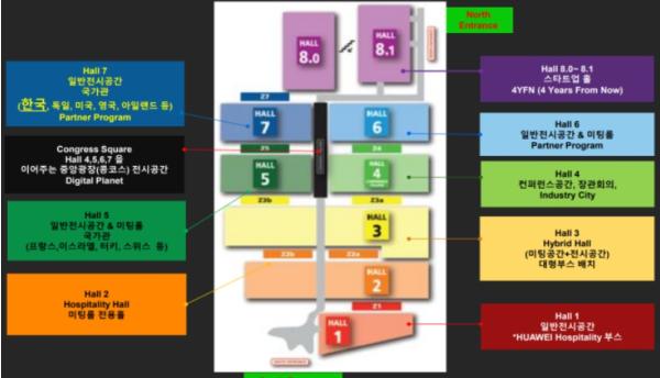 산업부는 그간 중기부·농림부·과기부 등 7개 중앙부처와 서울시·경기도 등 17개 지자체가 참여하는 ‘해외마케팅 정책협의회’를 통해 해외전시회 통합한국관 확대를 추진하고 있는데, 금번 MWC에서는 산업부·과기부· 중기부·부산시 등 총 8개 기관, 118개 기업이 참여해 역대 최대 규모로 통합한국관이 구성됐다. 이는 작년의 3개 기관, 76개 기업 참여에 비해 기관 수로는 2배 이상, 기업 수로는 50% 이상 확대된 규모이다. 통합한국관에서는 올해 MWC의 키워드인 ‘AI’에 맞춰 증강현실, 딥러닝, 컴퓨팅 관련 중소기업과 스타트업이 대거 참가한다. 특히 AI 카드 제조사인 모빌린트, 대화형 AI 영상합성 솔루션을 제공하는 딥브레인AI 등 혁신기업들의 실질적인 성과 창출이 기대된다. 래블업, 가우디오랩 등 올해 1월 CES에 참가했던 혁신기업들도 이번 전시회에 참가해 해외 진출 저변을 넓힌다.