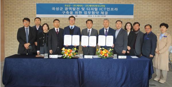 [중앙뉴스라인, 김민수기자] 곡성군이 KT 및 KT엔지니어링과 함께 지역의 디지털 정보통신기술(ICT) 인프라 구축과 함께 광역 발전을 촉진하기 위해 지난 6일 업무 협약을 맺었다.
