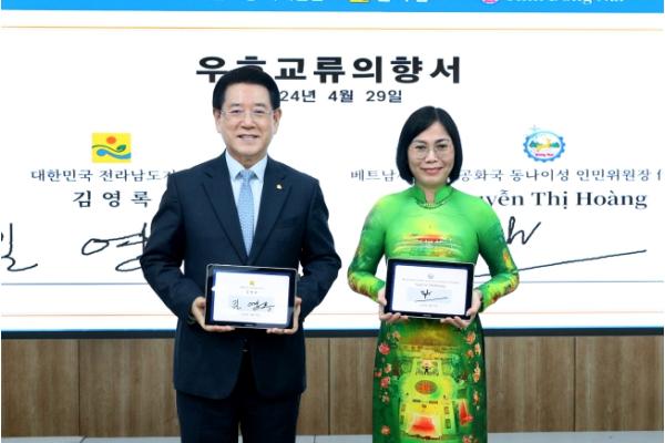 [중앙뉴스라인, 김민수기자] 전라남도는 29일 도청 서재필실에서 베트남에서 가장 성장 속도가 빠른 지역 가운데 하나인 동나이성과 우호교류의향서(LOI)를 교환하고, 경제통상과 문화관광 등 다양한 분야 협력을 강화하기로 했다.