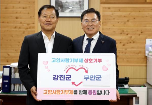 기탁식에는 서순철 강진군 부군수, 정현구 무안군 부군수가 참여해, 양 지자체의 우호 교류와 고향사랑 기부문화 확산을 위해 협력할 것을 약속했다.