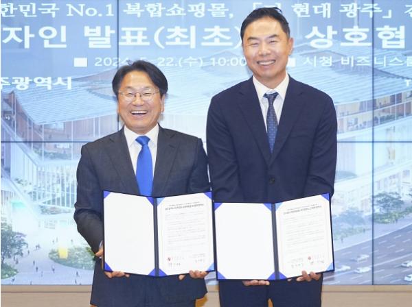 광주광역시와 ㈜현대백화점은 22일 시청 비즈니스룸에서 강기정 시장, 정지영 대표이사가 참석한 가운데 ‘광주시-현대백화점 상호 협력 협약’을 체결했다.