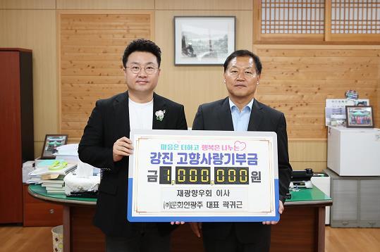 강진군에 따르면 재광강진군향우회 곽귀근 회원이 지난 5월 9일 개최된 마량면민의 날 행사에 참여 이후, 고향 발전을 위해 28일 고향사랑기부금 100만원을 기탁했다고 밝혔다.