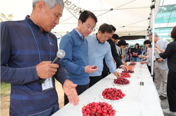 이날 시식회에는 강진원 군수 등 관계자들과 연구회원들이 모여 향후 체리 유통과 재배 기술 정보를 공유하는 뜻깊은 시간을 가졌다.