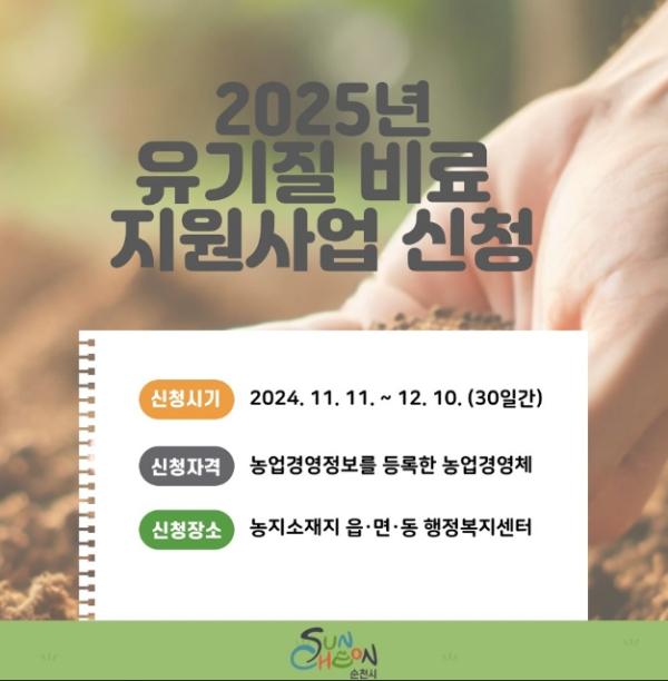 순천시, 2025년 유기질비료 지원사업 신청·접수