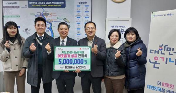 [중앙뉴스라인, 전은희기자] 순천시는 지난 11일 한성모터스 순천전시장에서 연말 이웃돕기 성금 1,500만원을 온기나눔하며 희망2025나눔캠페인에 동참했다고 밝혔다.