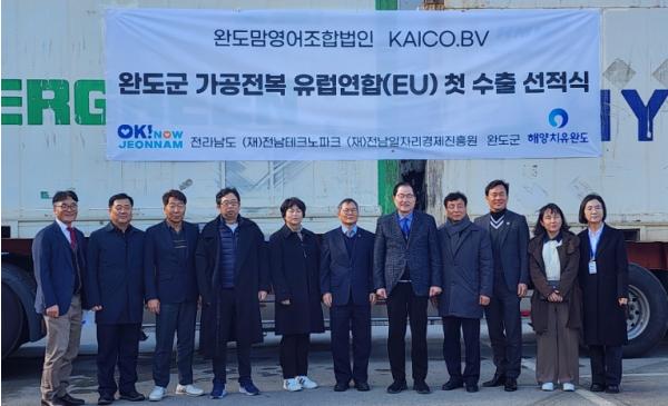 [중앙뉴스라인, 김민수기자] 전라남도는 18일 신우철 완도군수, 장헌범 전남도 기획조정실장, 이수화 완도맘영어조합법인 대표 등 20여 명이 참석한 가운데 완도맘영어조합법인에서 전복 네덜란드 첫 수출 선적식을 가졌다고 밝혔다.