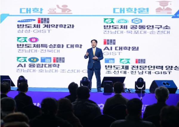 강 시장은 “반도체 설계기업 5개가 최근 광주와 투자협약을 맺는 등 광주는 새로은 희망을 보고 있다”며 “이들 기업은 광주의 AI인프라와 인재를 보고 광주를 택했다. 광주의 인재를 보고 투자하겠다는 기업이 하나가 둘이 되고, 열이 되고, 천개가 되는 그날 광주 라이즈(RISE) 사업은 성공할 것이다”고 강조했다.