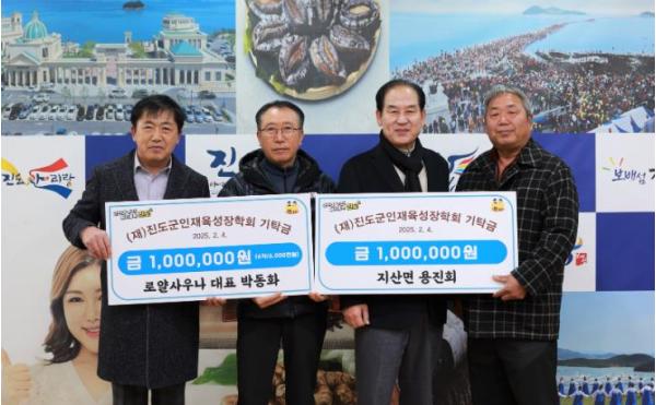 (재)진도군인재육성장학회가 군민과 단체로부터 장학금 약 2,500만 원을 기탁받았다.