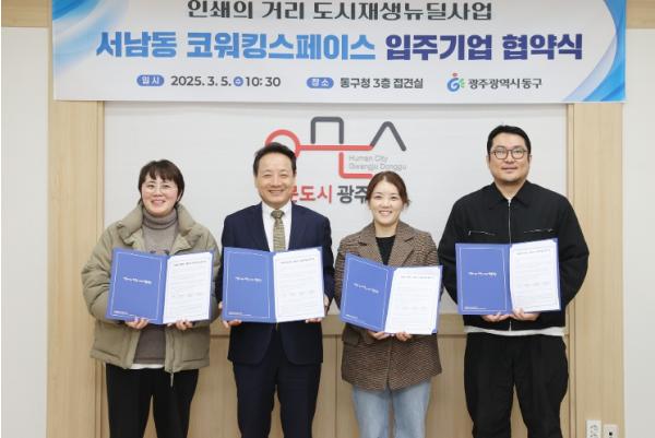 [중앙뉴스라인, 전은희기자] 광주 동구는 지난 5일 인쇄의 거리 도시재생 활성화 사업의 일환으로 추진 중인 ‘코워킹 스페이스 공간 지원사업’에 선정된 입주기업 3곳과 협약을 체결했다고 밝혔다.