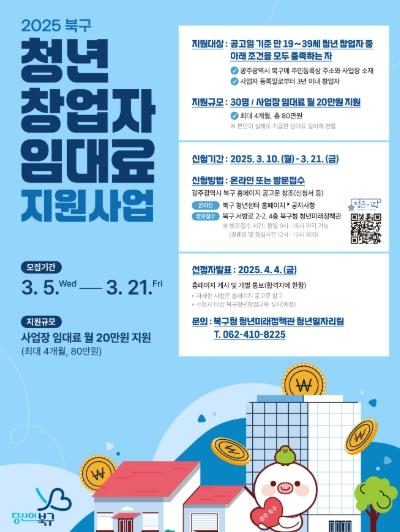 [중앙뉴스라인, 전은희기자] 광주시 북구가 ‘청년 창업자 임대료 지원사업’ 참여자를 본격적으로 모집한다고 11일 밝혔다.