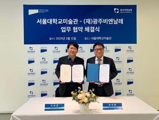 광주광역시는 광주비엔날레재단과 서울대학교미술관이 12일 서울대미술관에서 ‘광주비엔날레 문화예술 교류 네트워크 확장 및 활성화를 위한 협약’을 체결했다고 밝혔다.
