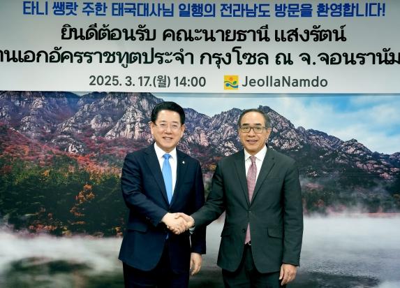 [중앙뉴스라인, 김민수기자] 김영록 전라남도지사는 17일 도청 접견실에서 타니 쌩랏 주한 태국 대사를 만나 전남도와 태국 간 경제, 문화, 관광 등 다양한 분야에서의 협력 방안을 논의했다.