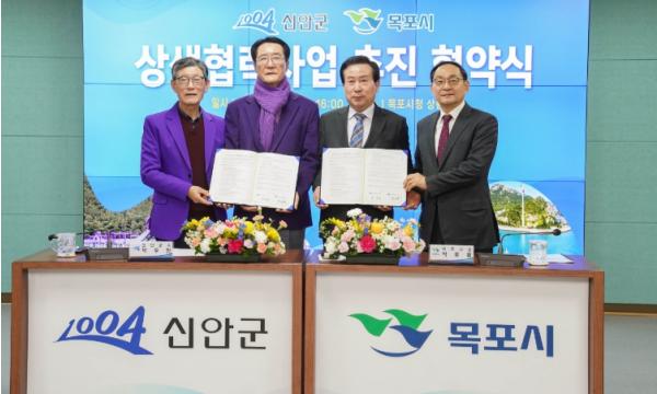 [중앙뉴스라인, 이대수 기자] 목포시는 지난 17일 신안군과 함께 목포시청 상황실에서 ‘목포·신안 상생협력사업 업무협약’을 체결했다. 이날 협약식에는 양 시·군 단체장과 관계 부서 공무원 등 26명이 참석했다.